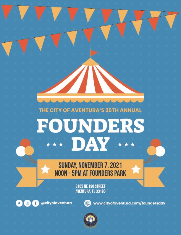 For more information, please visit cityofaventura.com/foundersday or contact the Community Recreation Center at 305-466-3883 or via email at crcenter@cityofaventura.com. Don’t miss this fantastic celebration of Aventura’s 29 years as a vibrant and thriving community!